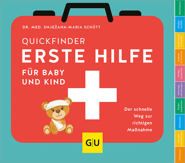 Was tun, wenn dem Kind etwas passiert? Dann geht es um schnelle und vor allem die richtige Hilfe. Die Kinder- und Jugendmedizinerin Dr. Snjezana Schütt bietet ein einzigartiges Konzept an, bei dem betroffene Eltern in Sekunden zur richtigen Maßnahme geführt werden: einen Quickfinder mit Griffmarken für jede Körperregion. Sie erklärt, was zu tun ist, wenn ein Fremdkörper verschluckt wird, wie man Verbrennungen richtig behandelt und einen Druckverband anlegt oder im schlimmsten Fall, wie man ein Kind bei Bewusstlosigkeit reanimiert.